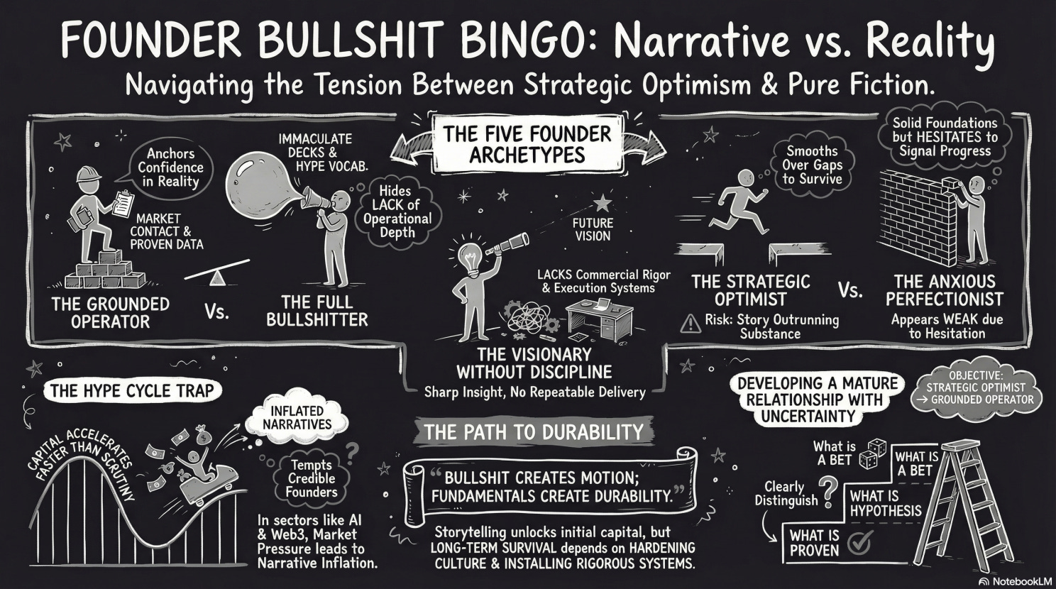 Ultimately, bullshit can create motion, but it rarely creates durability. The market eventually sorts these archetypes, rewarding those who develop the discipline to project conviction without detaching from evidence.