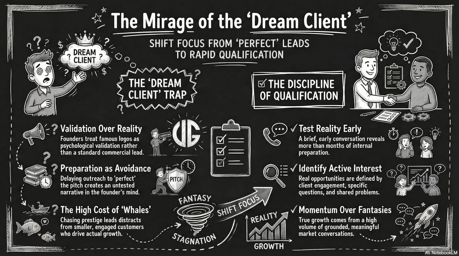 One of the patterns I have seen repeatedly while working with founders is what I think of as the “dream client” problem. At some point in almost every early-stage company, a lead appears that seems unusually significant. It might be a well-known brand, a large enterprise, or someone influential in the market the founder wants to enter. Very quickly, that opportunity begins to take on a special status in the founder’s mind. Instead of being treated as just another potential customer, it becomes the client that might validate the product, accelerate growth, and unlock credibility with the rest of the market.